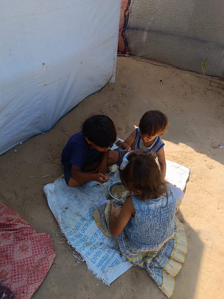 I am Mohammed Suleiman Said, a resident of the Gaza Strip. I live with my family of five members, including three children. We are going through extremely difficult living conditions due to ongoing displacement. Our home has been completely destroyed, and we are currently living in a tent that provides no protection from the cold of winter or the heat of summer. We also have a cat who shares food with us.