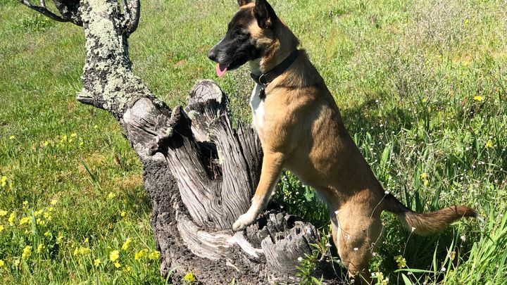This is Tikka she is Belgian Malinois mix. She is the sweetest most gentle dog I have ever owned. She was rescued from the streets of Richmond CA by my son who was a Police Officer there at the time. After going through hard times myself I felt I could use a good companion. I got Tikka when she was just a few months old and she has been my best friend ever since. She loves to run free on the 30 acres we live on and has really come alive since being home with me.