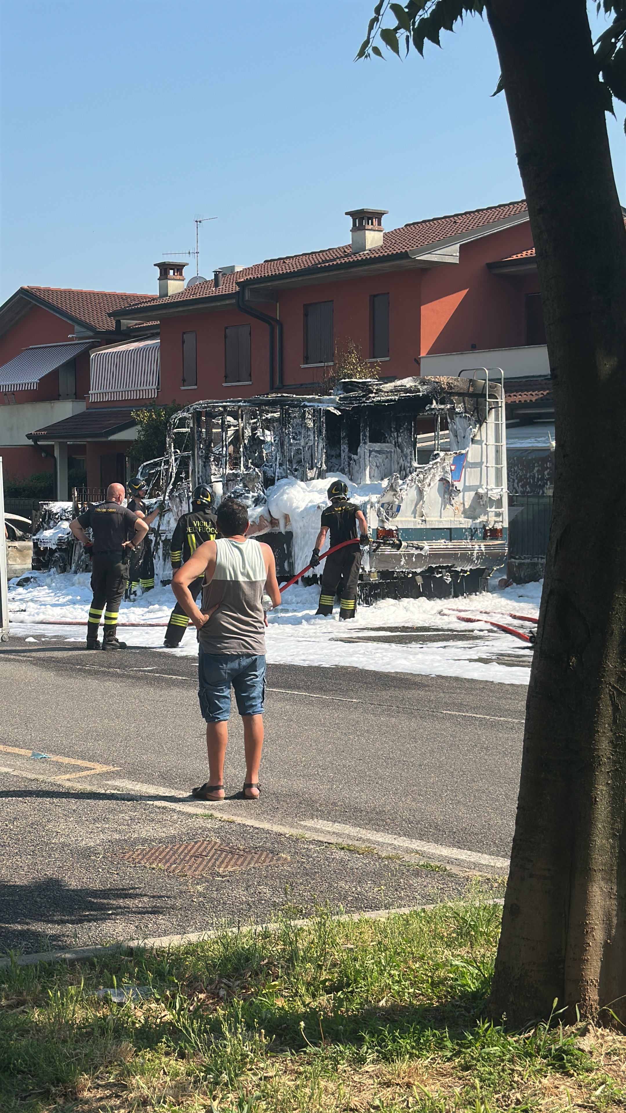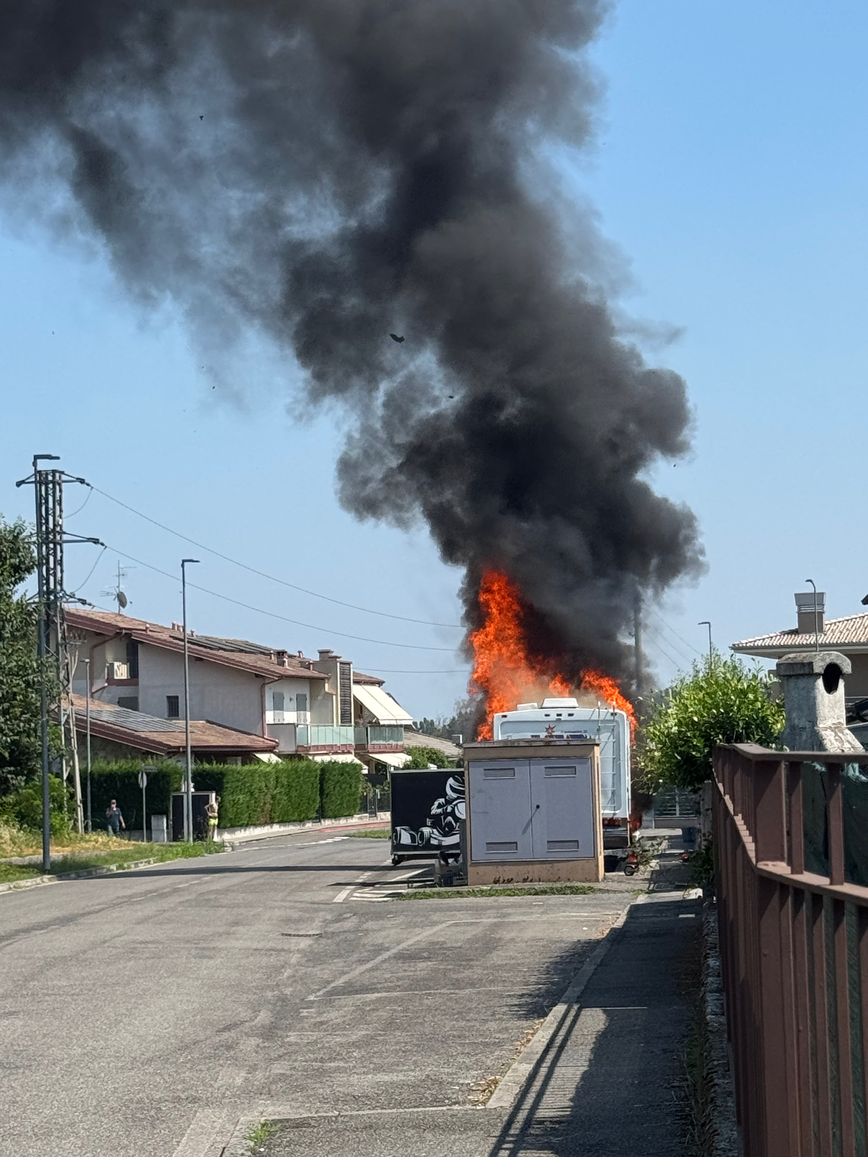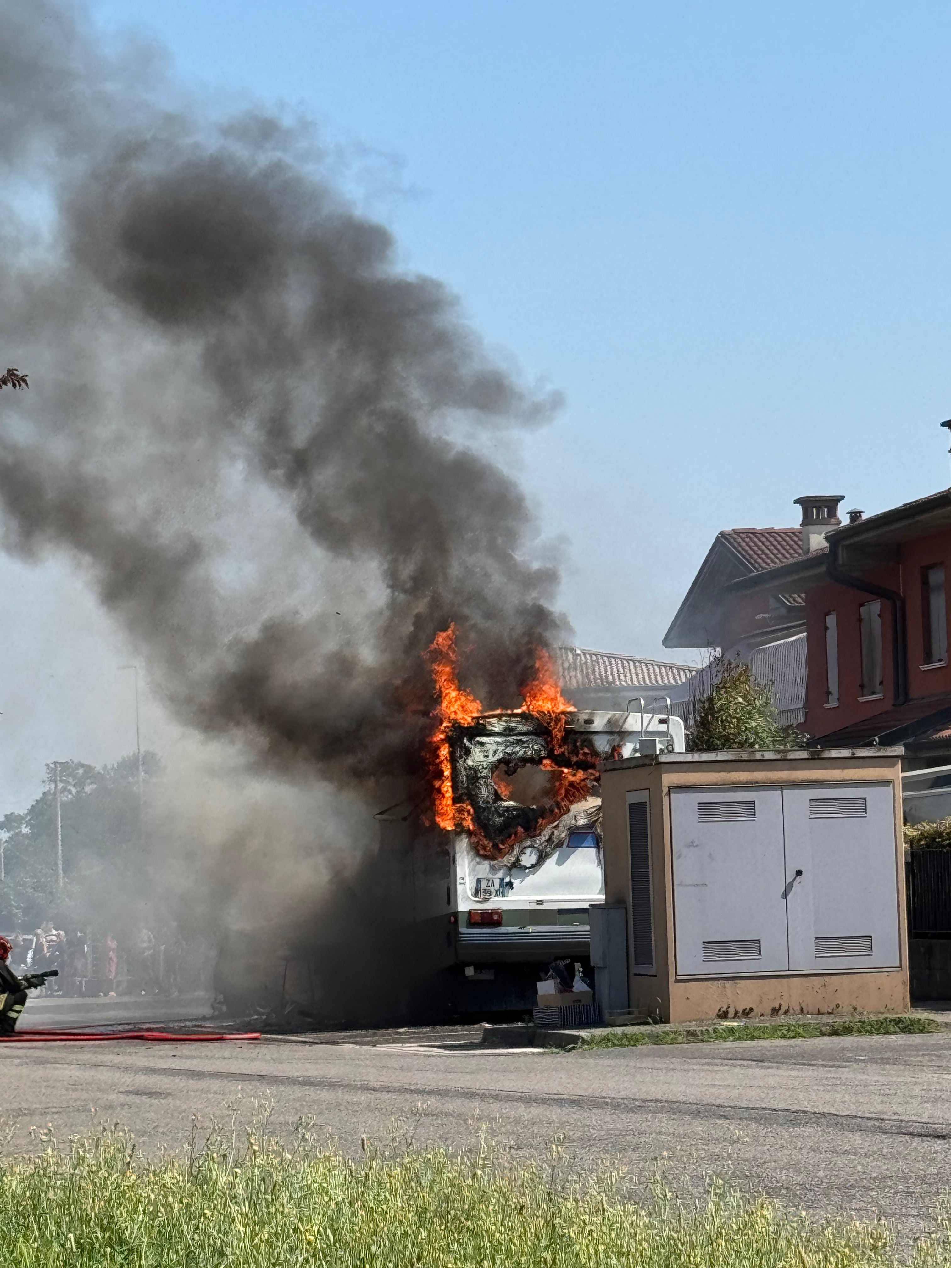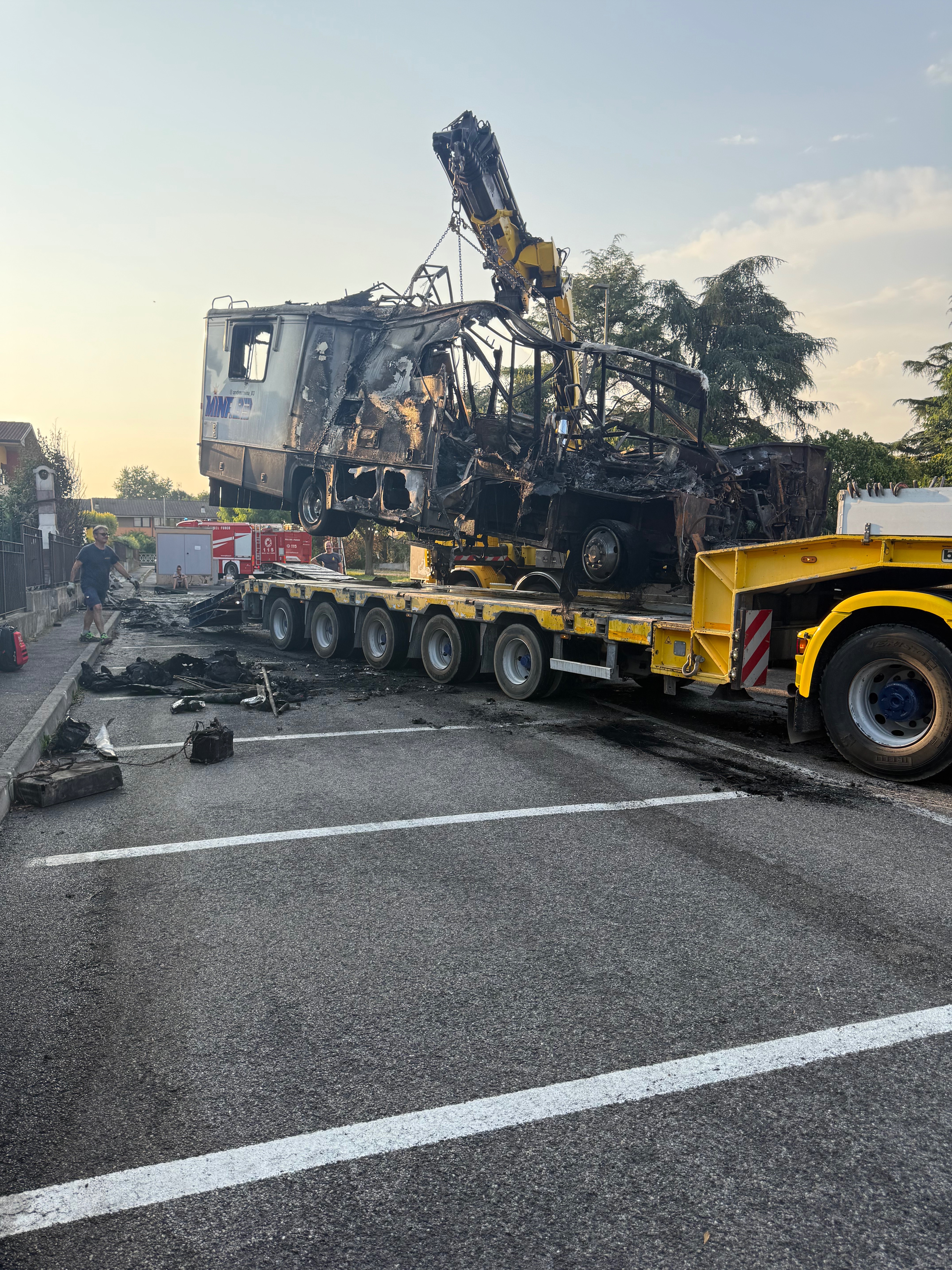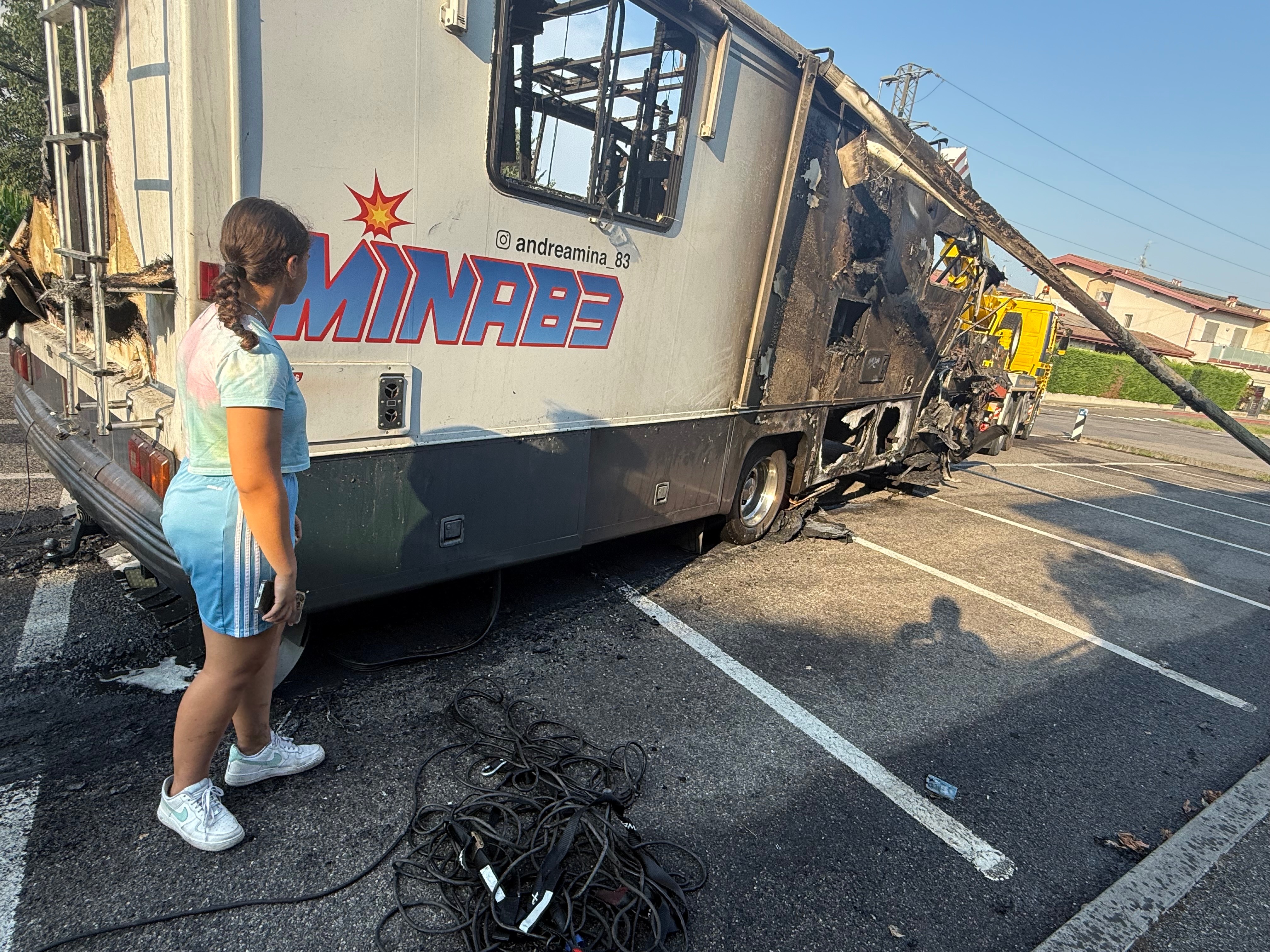 Probabilmente per un corto circuito, il Camper ha preso fuoco e tutto ciò che era al suo interno è andato distrutto . Tute, caschi guanti stivali , airbag, para schiena, para costole , tutto.