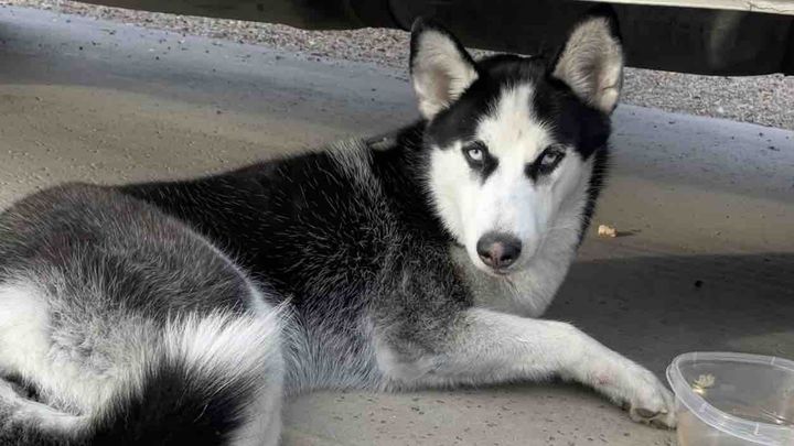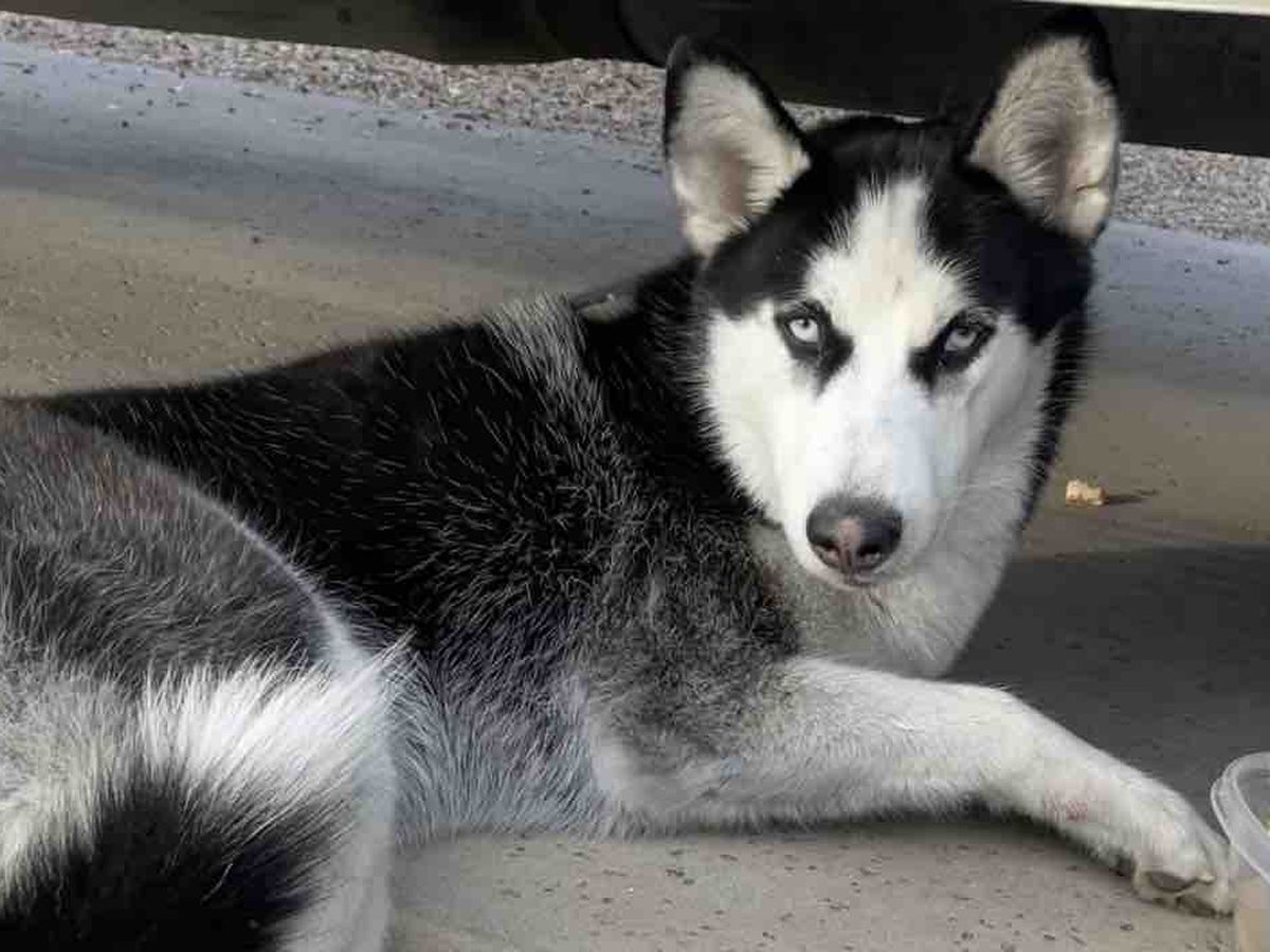 This morning (1/17/2022) around 8am, my fiancé found a husky laying beneath our truck in the driveway.