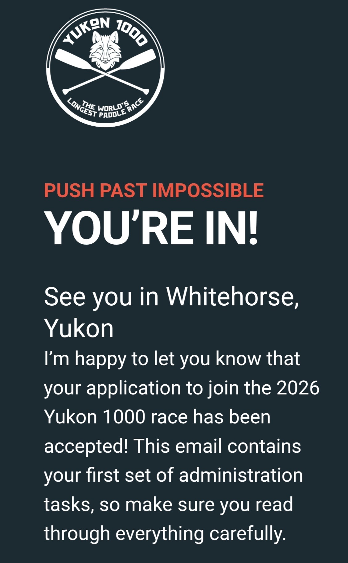 Please follow along, share the story, and if you can, donate to help us reach both finish lines the end of the Yukon and our fundraising target.