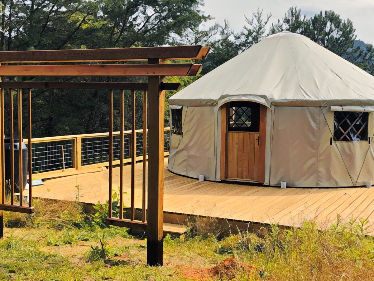 They are 4-season livable, unique in their heritage and geometric harmonics, and make a memorable nest for rest and repair. The soul knows something is alive in each of our yurts - they are stand-alone in quality and unmatched in their care. We are so proud to know that each of our regional Yurts tenaciously survived Helene.