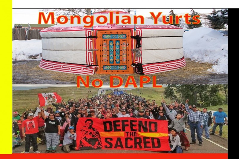Our campaign will bring 7 previously owned Mongolian yurts to the Standing Rock water protectors. Three yurts will be going to a group of families called "Earth Camp" and four will be dispersed upon arrival. The families from 'Earth Camp' help the main camp known as the Oceti Sakowin- Seven Council Fires, in various ways including front line action, cooking and cleaning in the main kitchen and the Ogala kitchen, hauling and cutting fire wood, holding ceremony, and more. They are all 100% committed to stopping the Dakota Access Pipeline and are in it for the long haul. They fly the Earth Flag to symbolize the unity of all people and to show their respect and love for Mother Earth. The 3 families have been camped on site since August. One of the families are Hunkpapa Lakota from the Standing Rock Reservation, another family is Oglala Lakota from Pine Ridge Reservation. The other family is Miniconjou Lakota, from Cheyanne River Reservation. Two of these families have 3 generations of family members with them, the other who live local have the support of relatives coming and going to camp.  Any other additional funds beyond the 7 yurts will go to supplying the yurts with wood, water, food, stoves and clothing. All exchanges will be documented by film, pictures, or posts and shared via updates from this campaign and on my FB page.