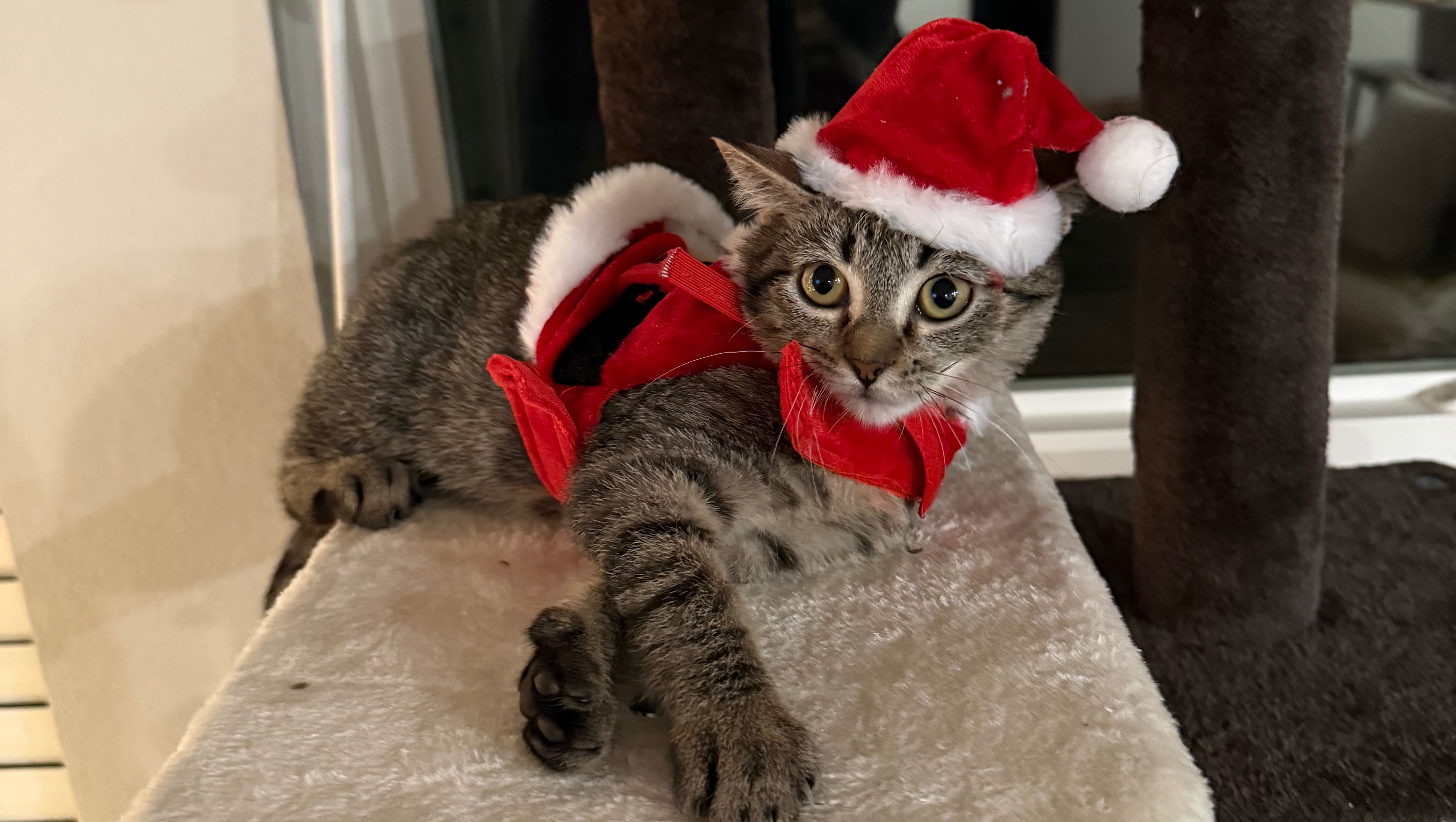 Hello, my name is Yasmine and my boyfriend’s name is Gabriel! Right around Thanksgiving we adopted our little kitten from the shelter, and he was doing great! Hopper is a 6 month old tabby cat who is super cuddly, loves to play and chase around his toys, and most importantly he’s a member of our family. On Tuesday evening both my boyfriend and I arrived home from work in the evening and were concerned because hopper wasn’t able to walk and his eyes were 2 different colors. We rushed him to an emergency vet after finding him like that and being so scared! After endless hours at emergency vets late at night, we have found out hopper has suffered bilateral hip fractures, a pelvic fracture, and a Traumatic Brain Injury. This has required 2 very extensive and expensive orthopedic surgeries. will require pretty extensive and expensive surgeries. We love our kitty boy and we would do anything to give him the best quality of life he can have going forward. We are so thankful that with god’s grace and strength hopper has made it through both surgeries and is to be coming home soon! I know how the story sounds, but we are just as confused as everyone. Both of us owners were at work all day, he is an indoor only cat, no one else has access to our house, and he has no way of getting outside. We love our baby boy and would not be getting him the help he needs if we didn’t feel that way!