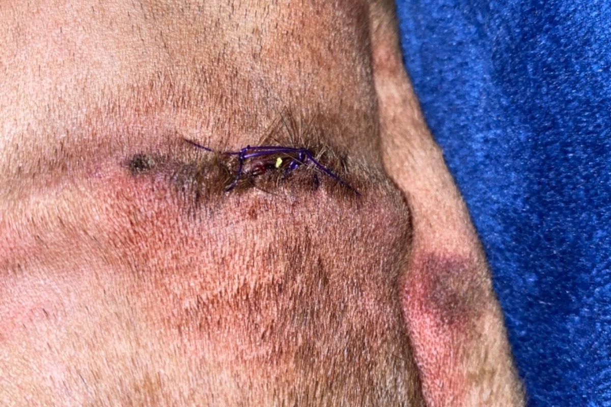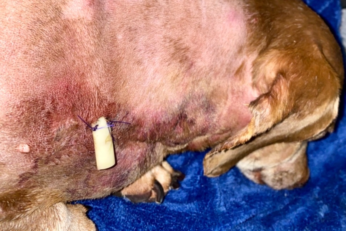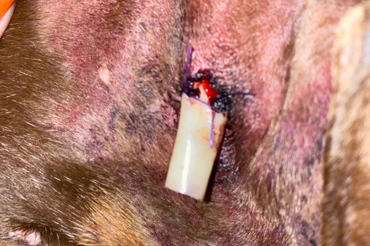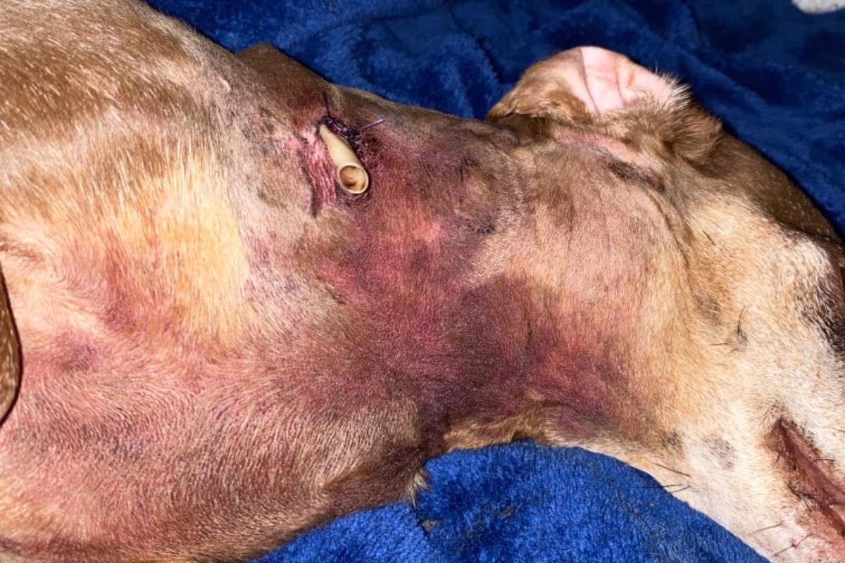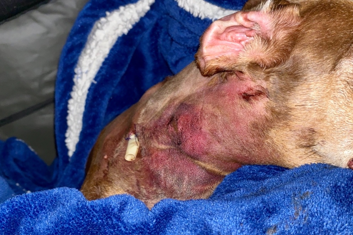 A couple days later she developed a very large puss filled abscess on her neck around the bite wound. I took her back to the vet & they kept her overnight again to perform a 2nd procedure under sedation & insert 2 more drain tubes.