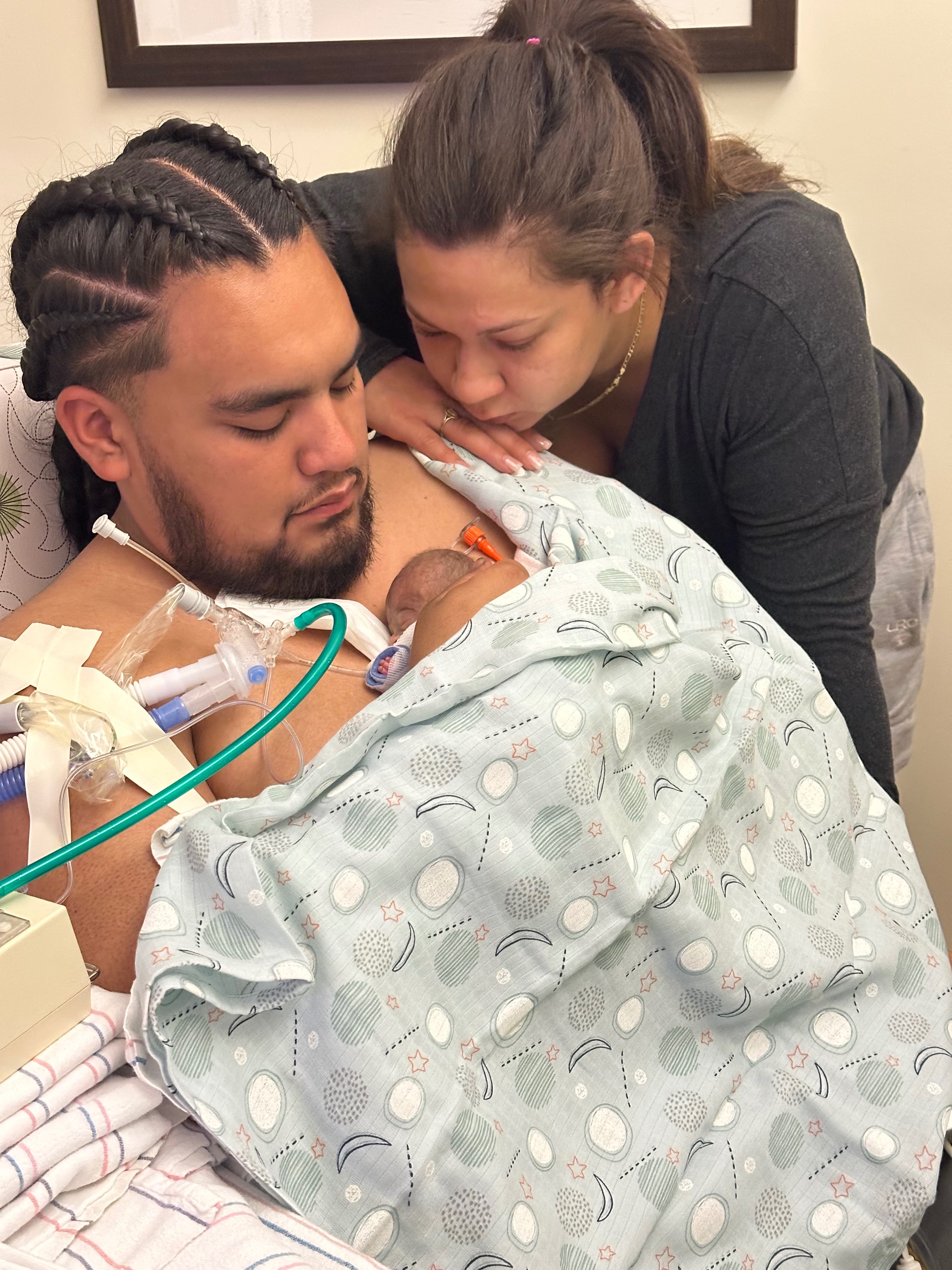 Family and friends, it is with heavy hearts that Owen and I inform you that our baby passed away in the early morning hours of July 30th. We are so grateful that he was able to feel our warmth for the first time and that he was able to take his last breath in the comfort of his dad's arms.