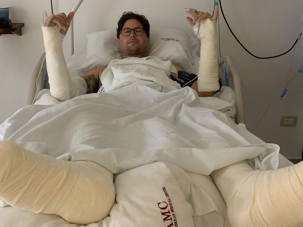Zach sustained multiple severe injuries and was rushed to the AMC Hospital in San Jose Del Cabo. Zach was sedated, and the medical staff there performed wonders to get him stabilized. My family and I didn’t know if he would make it through the night due to his body going into hypovolemic shock for how much blood he was losing. This shock was due to his internal bleeding caused by the trauma of the fall. But, miraculously, the team got him stabilized 12 hours later, and I went from thinking I had lost my brother to getting to tell him how much I love him with my family on the phone.