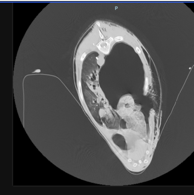 He suffered massive trauma, a serious pneumothorax, a punctured muscle wall, broken ribs and a punctured lung. Zach was dying and went into surgery at 10pm at night. Now, he is mostly stable but may need more surgery if he is leaking air into his chest.
