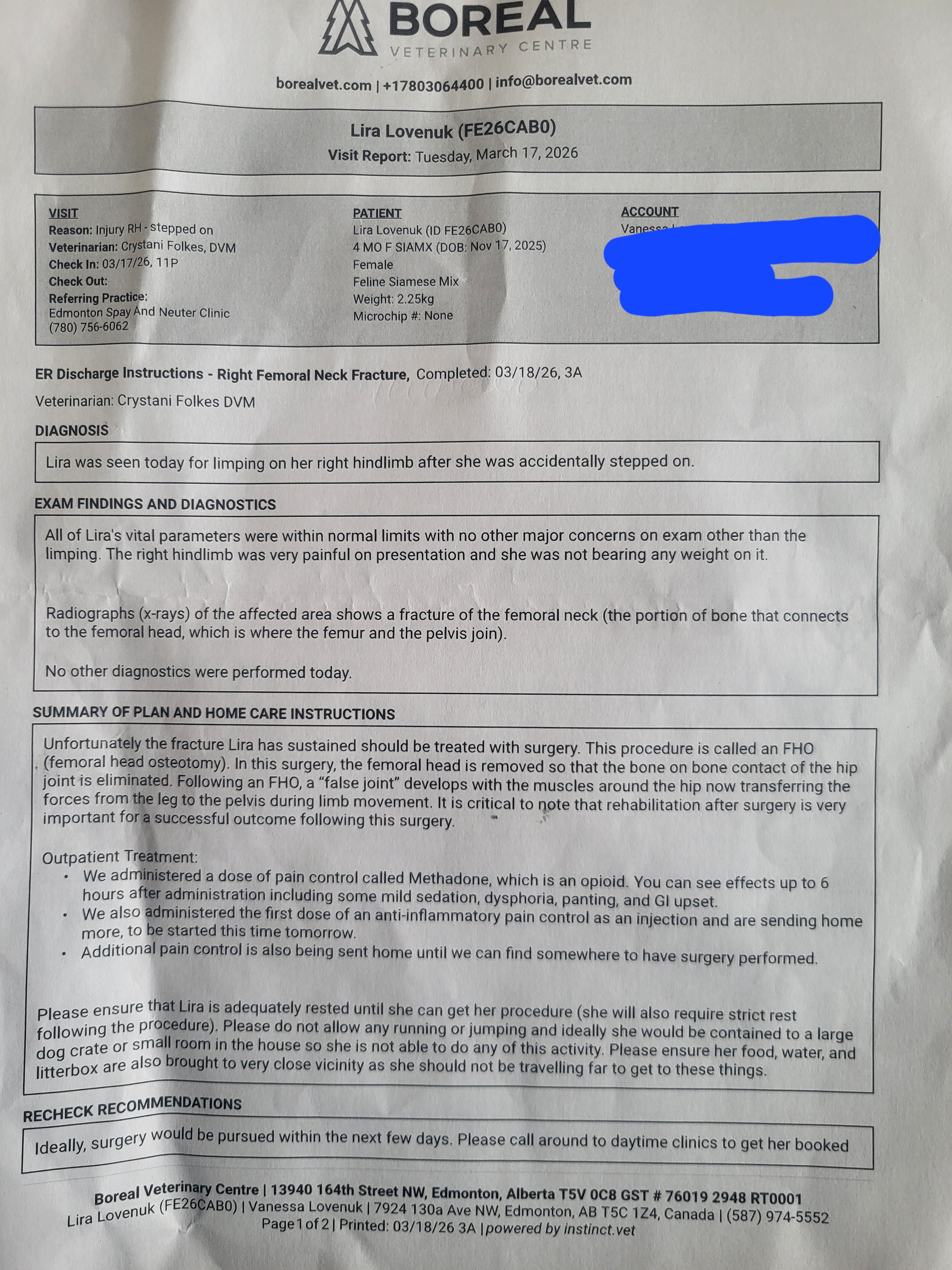Hi, my name is Shyla (Charlie). My kittens name is Lira, and she's 5 months old. She recently fractured her femoral neck and requires FHO emergency surgery. I would appreciate any help for Friday March 20th. Her appointment is for 8:40 AM. She was quoted for $1,600 for her surgery. In need of help ASAP. Even sharing helps a bunch!