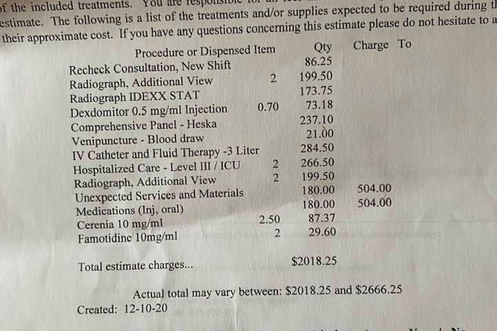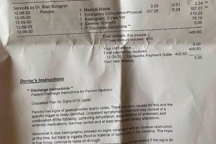 Never in a million years did I think something like this would happen. A feeling most people get when faced with such a difficult situation. Due to COVID, I am currently unemployed for the second time this year- thus why I am reaching out to receive help. So far, Pancho's medical bills are around $4,400.00 and payment plans are not an option. Below is a break down of Pancho's bills, that are only expected to increase. ANYTHING helps at this point. And thank you to anyone who can contribute or simply share our story.