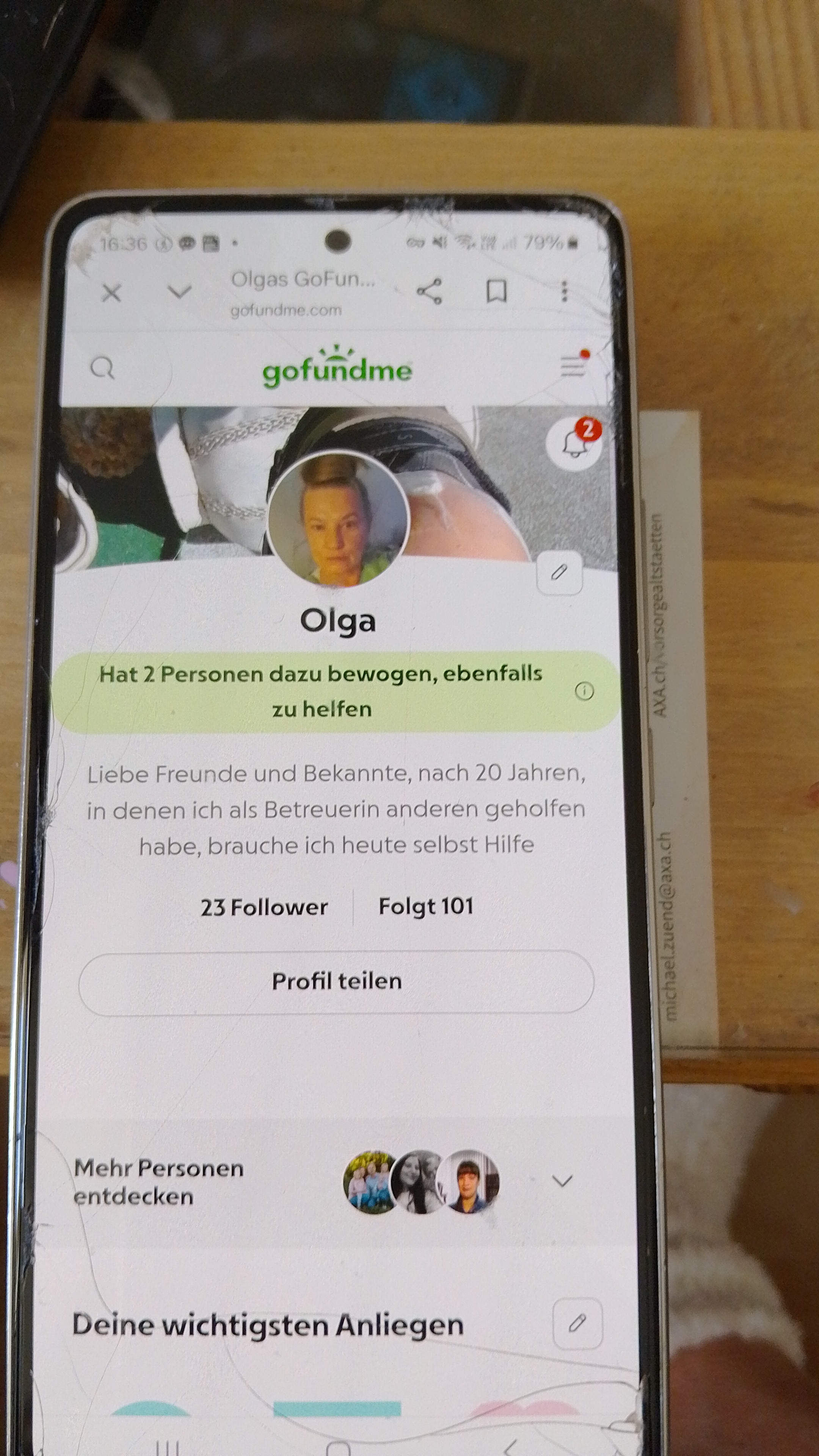 Liebe Mitmenschenviele Jahre lang durfte ich als selbstständige Betreuerin für andere da sein. Ich habe es geliebt, Menschen in schweren Zeiten zu stützen und ihnen Halt zu geben. Heute stehe ich an einem Punkt, an dem meine eigene Kraft nicht mehr ausreicht.