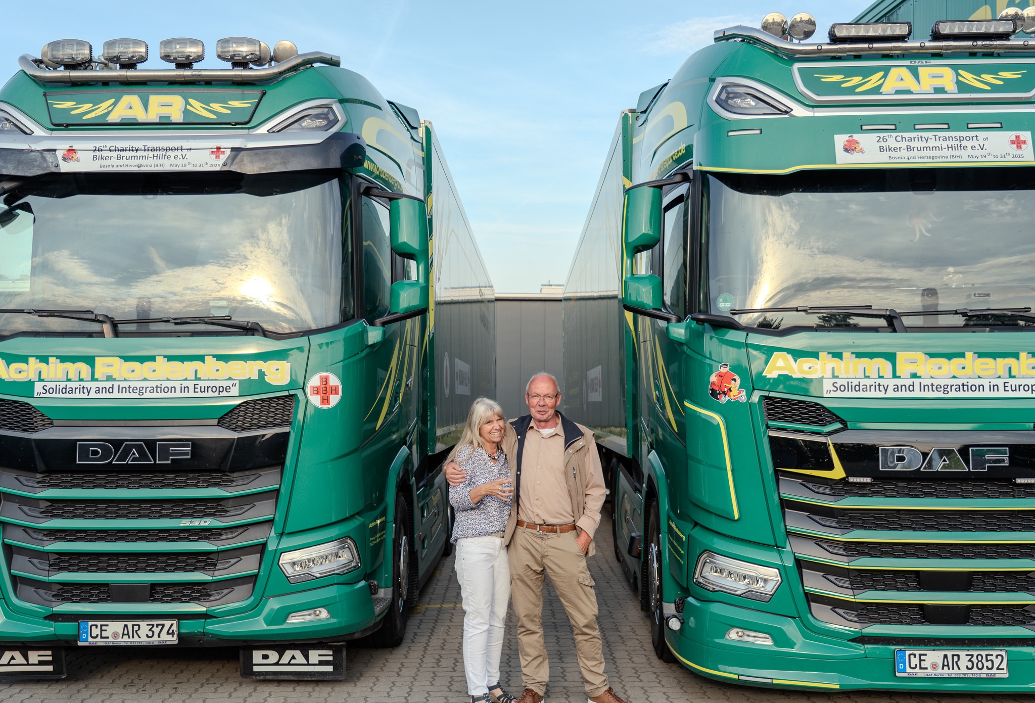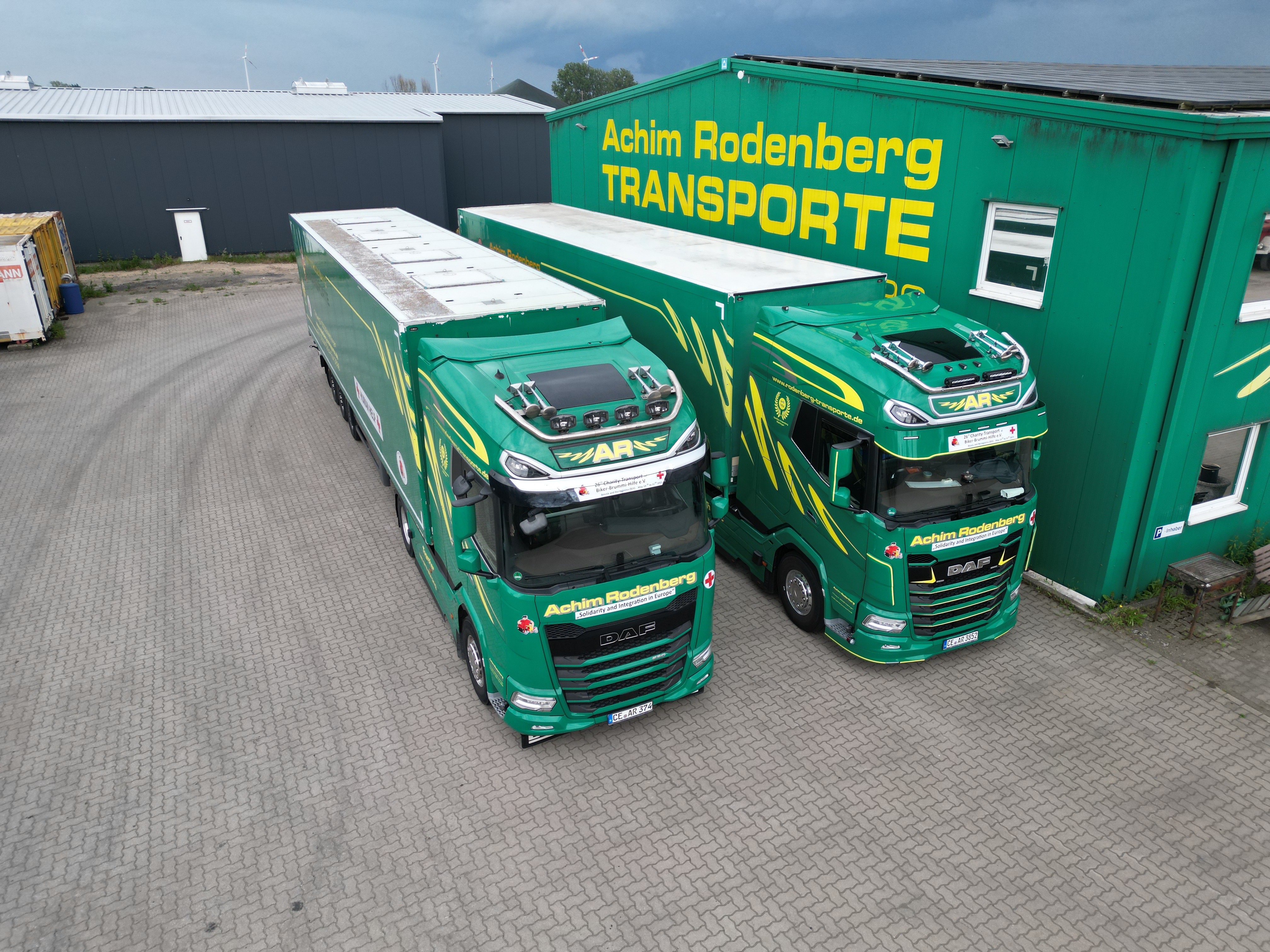 Jetzt stehen die LKWs wieder bei uns auf dem Hof. Alles ist da, bereit zum nächsten Einsatz.
