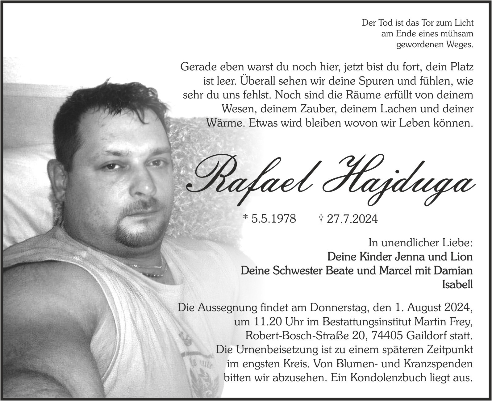 Ein plötzlicher Abschied, der alles verändert hat wir haben unseren geliebten Vater verloren. Der Mensch, der mich und meinen Bruder beschützt, geliebt und durch das Leben begleitet hat, ist nicht mehr da. Der Schmerz darüber ist unermesslich.
