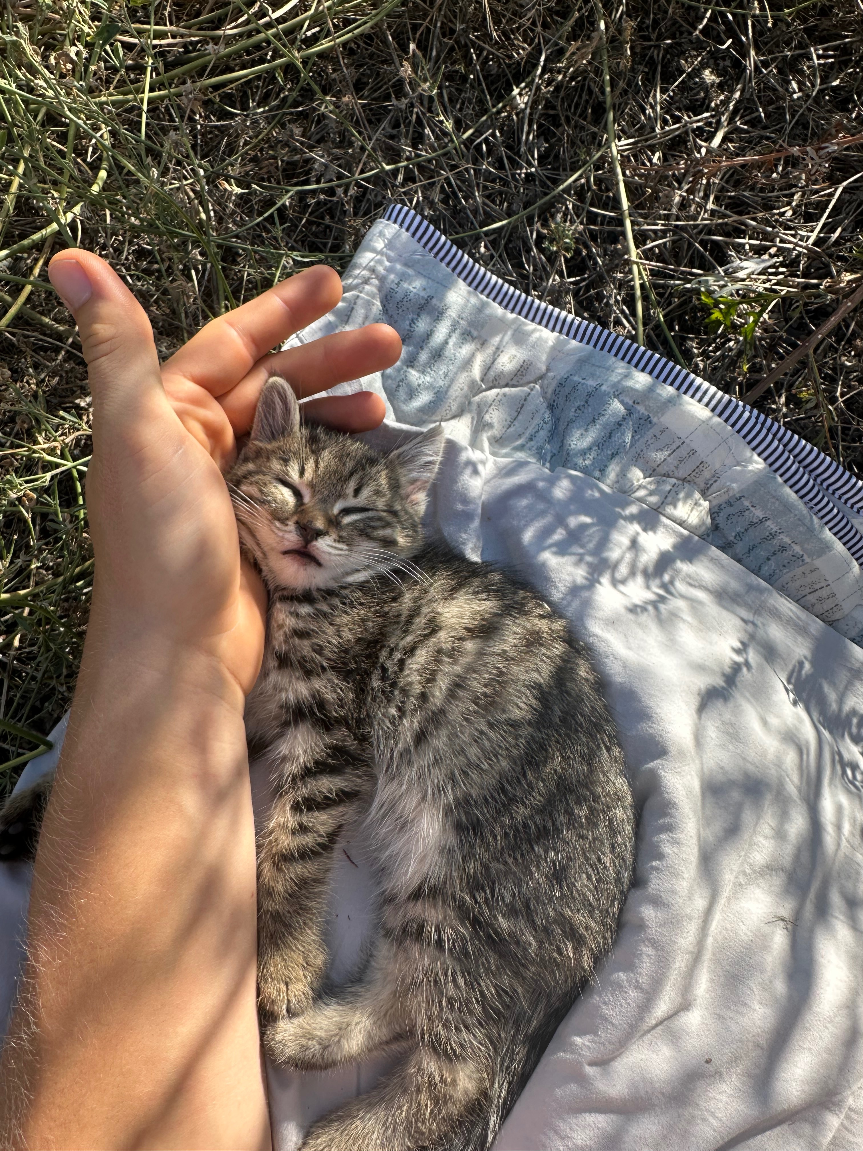 Nach ein paar Tagen in Kasachstan lernte ich einen supernetten 20-jährigen Einheimischen kennen, der sich sofort in das Kätzchen verliebte. Er verbrachte die ganze Nacht mit ihr, fütterte sie und passte liebevoll auf sie auf. Am nächsten Morgen fragte er mich, was mein Plan mit den Tieren sei, und bot mir an, sich um die kleine Katze zu kümmern. Da er selbst bereits eine Katze hat, besitzt er alles Nötige – eine kleine Höhle, einen Kratzbaum und ausreichend Futter.
