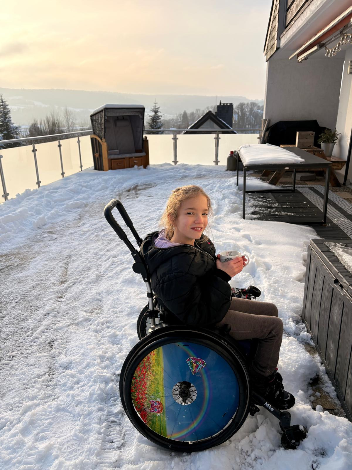 Mit den Jahren wurde klar, dass beide Kinder Einschränkungen haben. Der Sohn Matteo lebt mit Spastiken, kann sich aber im Alltag, wenn auch mit etwas Mühe, relativ selbstständig bewegen. Unsere Nichte Greta ist stärker betroffen. Aufgrund ausgeprägter Spastiken in den Beinen ist sie dauerhaft auf einen Rollstuhl angewiesen.