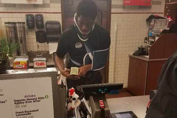 God is using his children as a WITNESS! In times like this where the world is coming to an end, there are still good people in this world! This child was definitely raised with good values! How amazing that with injuries, he CHOSE to get UP, and go to work for the good of himself and others! Praise this sweet young man! You are remarkable!