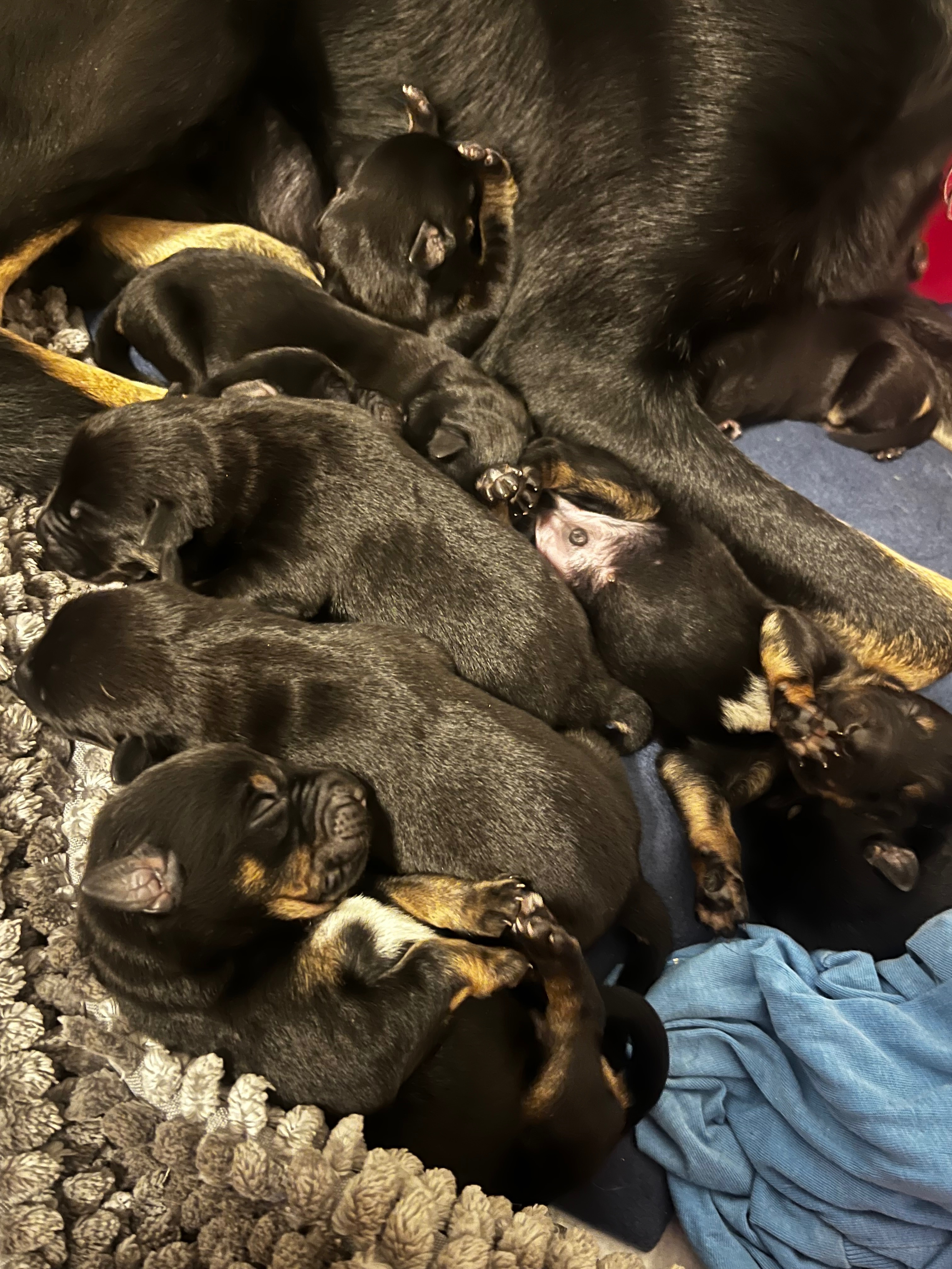Eeva’s beautiful German Shepherd puppies came into the world just two weeks ago — 10 precious little lives, each one healthy, strong, and already beginning to open their eyes. Their mom, Eeva, was safely placed locally and has space and care she needs to raise her babies.