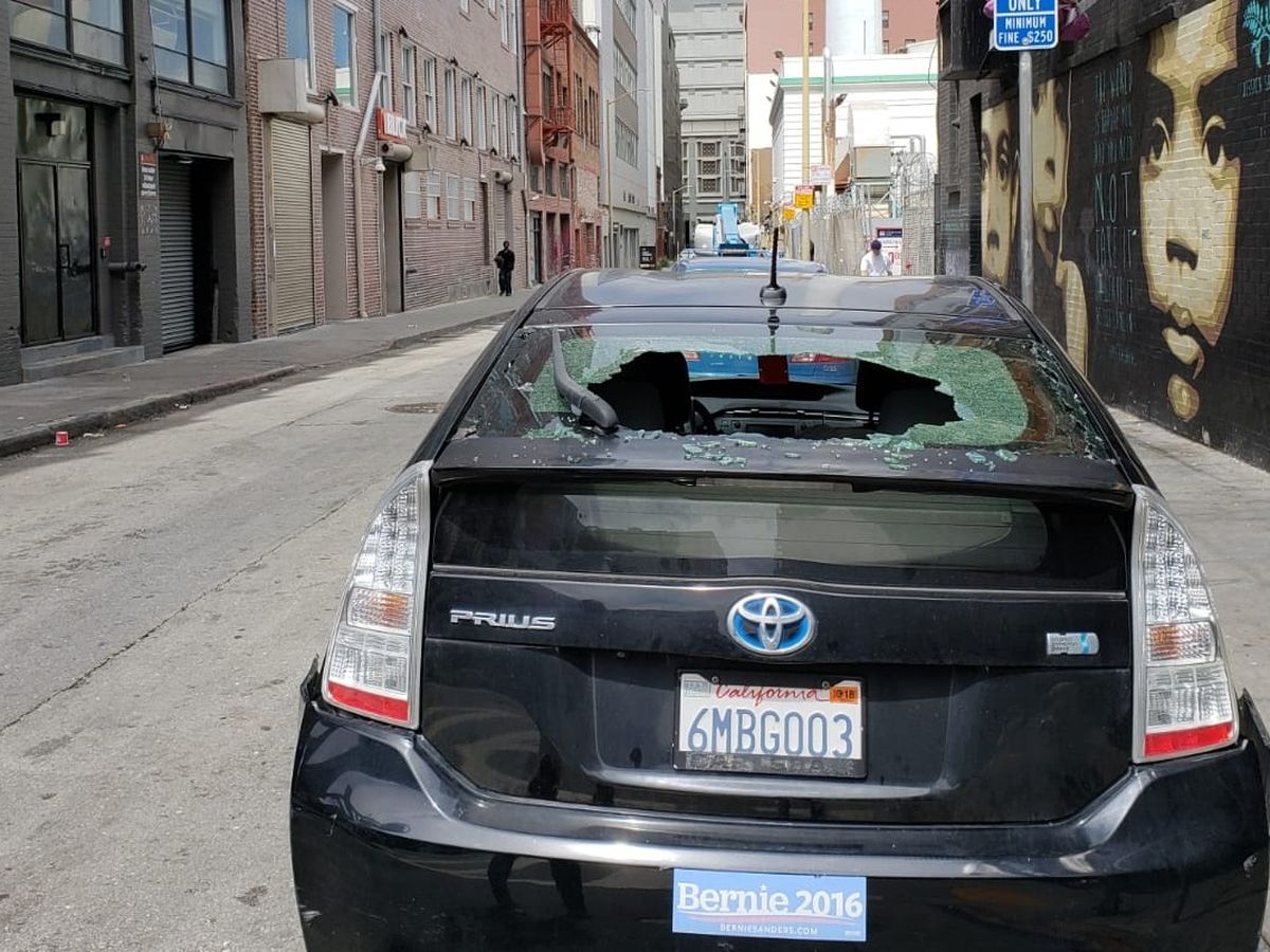 Our friends Luca and Dan were about to road trip back to San Diego after pushing progressive policies at the 2019 CADEM Convention in San Francisco last weekend, when their rear windshield was smashed and their backpacks and luggage stolen.