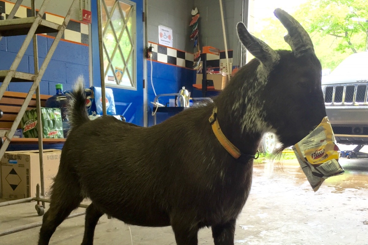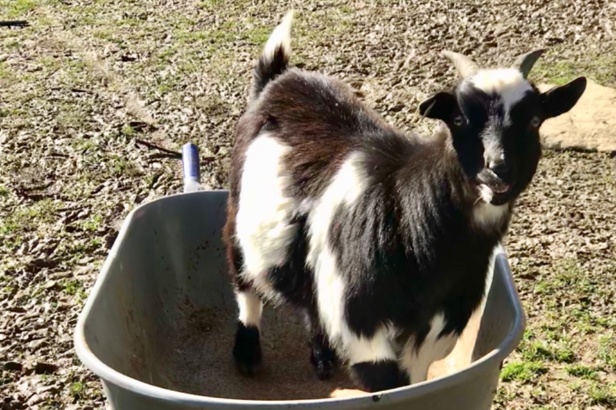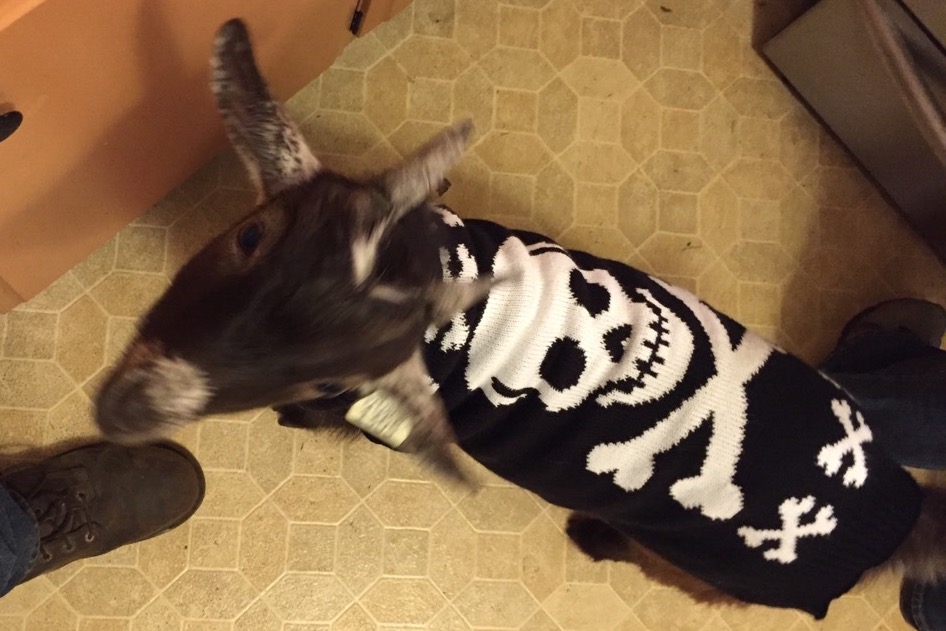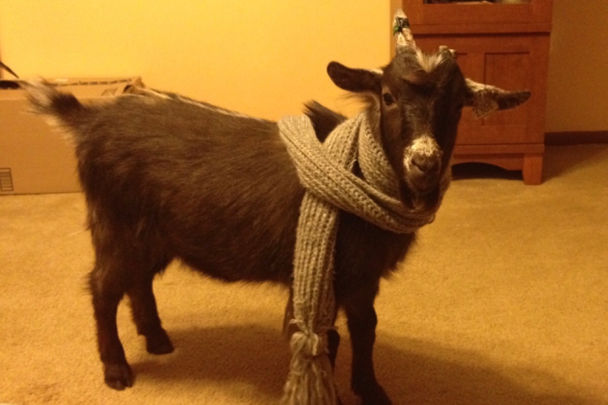 This is our first house goat, Pooper!