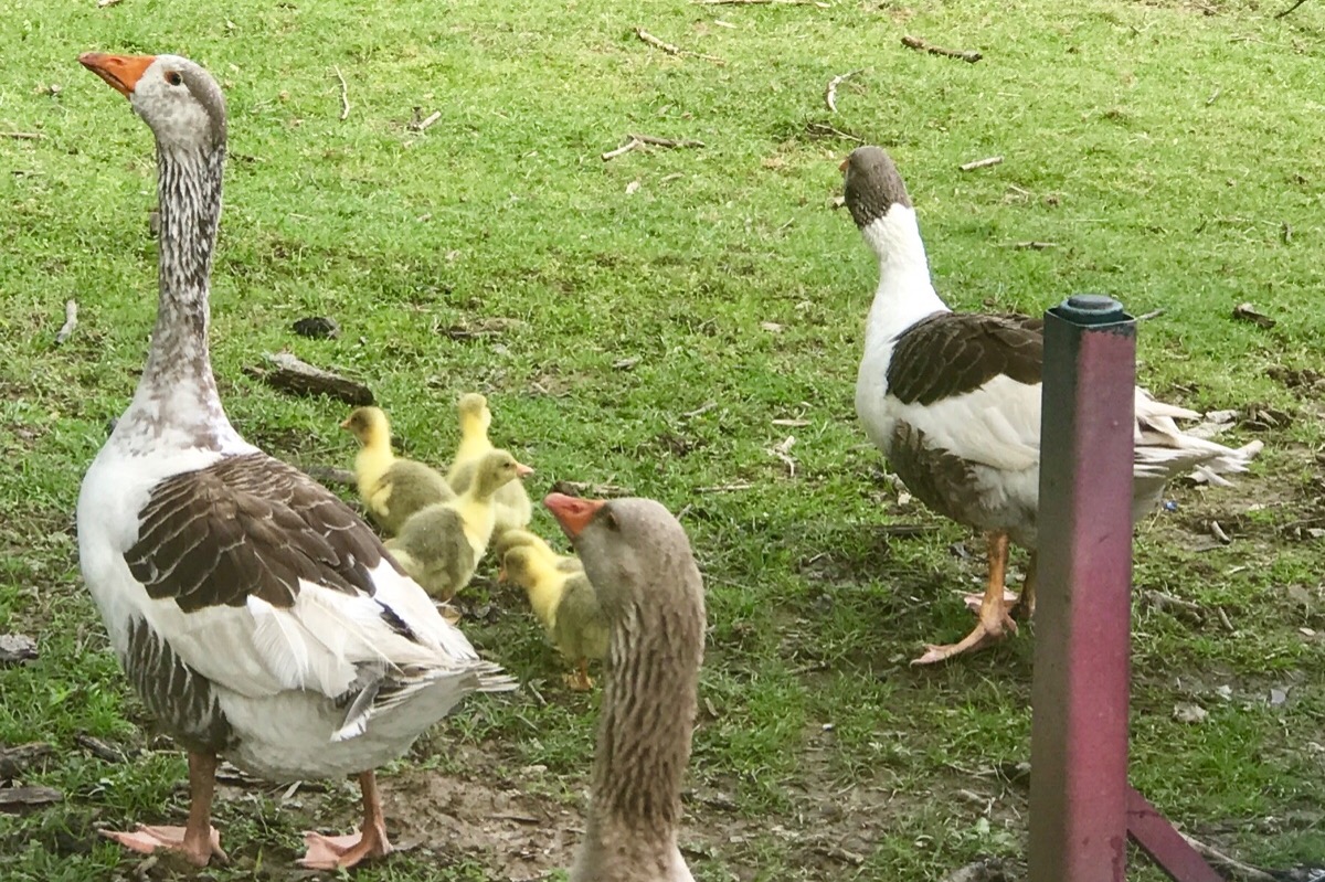 She has made it her mission to save any animal that she hears about in need of help. This has led to our crew of two horses, four sheep, four goats, three pigs, a rabbit, a dog, a turkey, and a handful of chickens, geese, and Muscovy ducks. Without a lot of room for stables in the barn, my mother built a fence right up to our back porch so every animal had a roof over their heads.