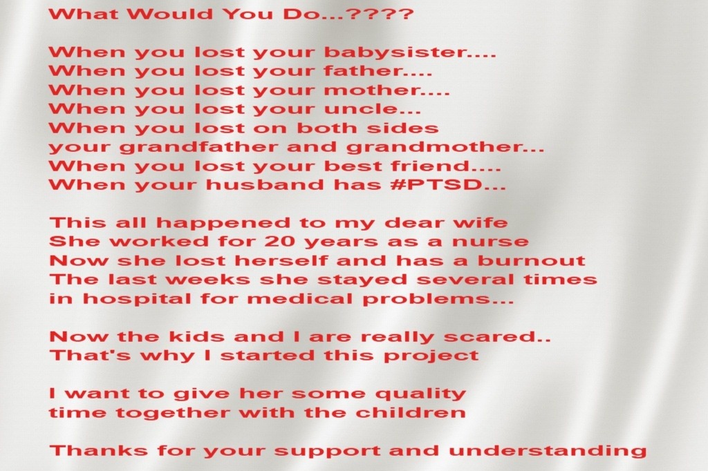 Dear friends, first of all I want to thank everyone for the sweet words and the many donations that have already been made. In a few days I will close my account on Twitter, and we will enter an uncertain time about the health of my wife. I hope that you are with us in our thoughts, and will not forget me. You all have a special place in our hearts and will carry this with us.