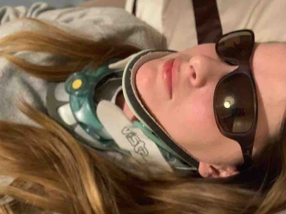 AAI (Atlantoaxial Instability) - excessive movement between the ligaments of (C1) and (C2). Neurologic symptoms can occur when the spinal cord or adjacent nerve roots are involved. Which Sarah is really suffering with, she has to wear the hard neck collar daily to prevent further damage.