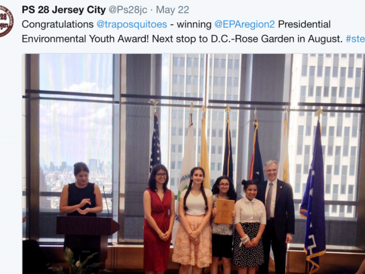 Our STEM team @projectres in Jersey City at Public School P.S. 28 was named region 2 winner for the PEYA (Presidential Environmental Youth Award). The award included a celebration at the region 2 headquarters in New York and this August we will be travelling to D.C. to recieve the award with other recipients from around the country. To fund this trip on Amtrack we need a small donation to help our students present a nationally award winning project to our nation's environmental leaders. The E.P.A does not provide any help with travel or accomodations and as teachers we do not have the funds/resources to pay for this honor the student's will recieve. Please see E.P.A website explaining the Traposquitoes project and invention. https://www.epa.gov/education/presidents-environmental-youth-award-peya-winners Please see their website and project. http://traposquitoes.wixsite.com/traposquitoes