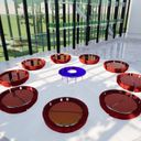 A show unlike any other. At the center — a round table divided into two parts. Both rotate, creating movement, atmosphere, and magic. Crescent-shaped tables, comfortable sofas, glowing lights.