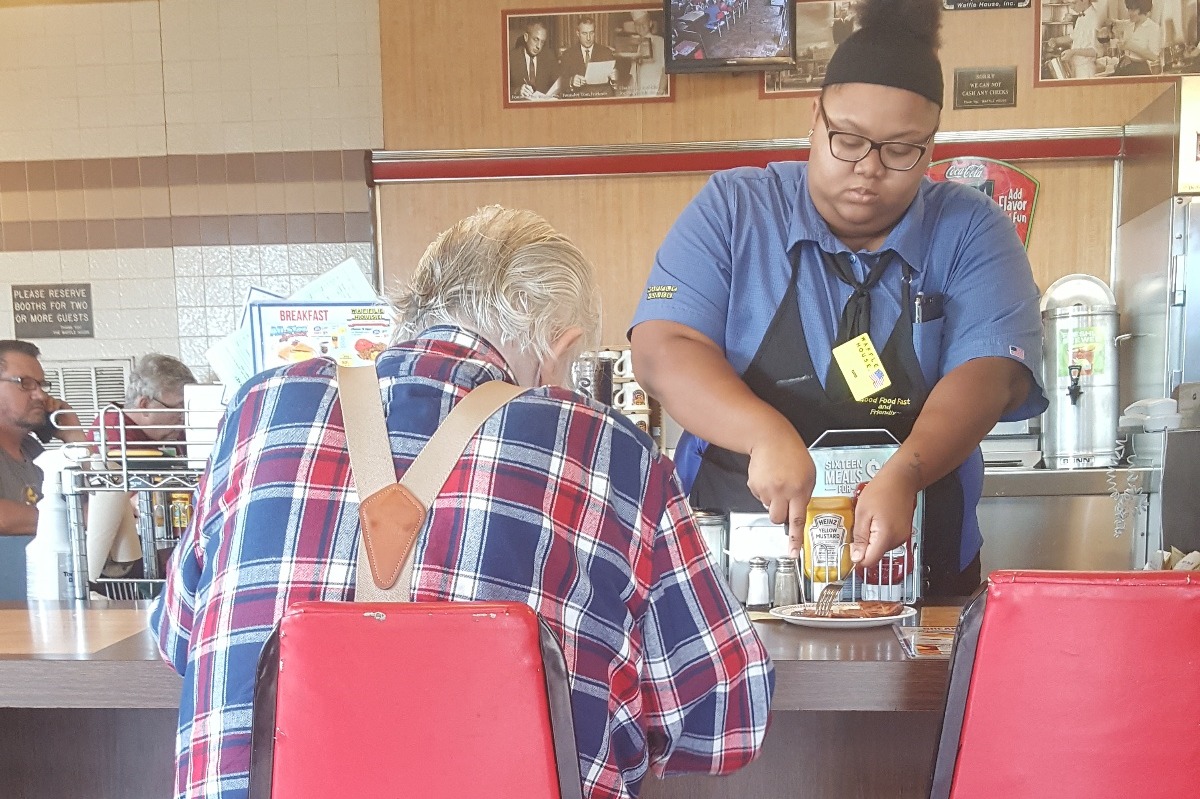 This is Evoni. She goes by Nini. She has been working at Waffle House since graduating High School from TCHS, saving her Tips for a College Education in Business Management.